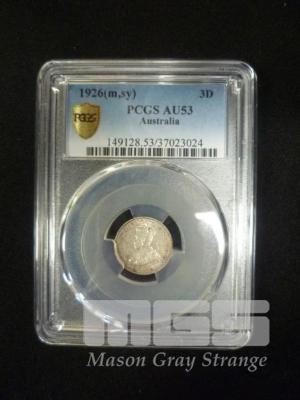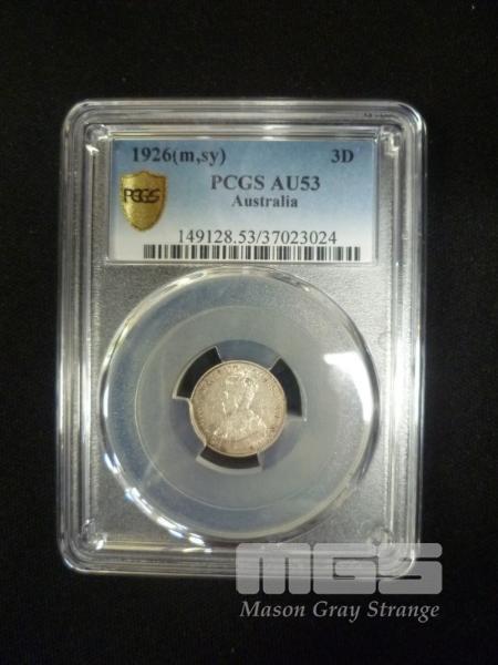 1926 AUST THREEPENCE AUNC 53 HIGH GRADE COIN KEY DATE