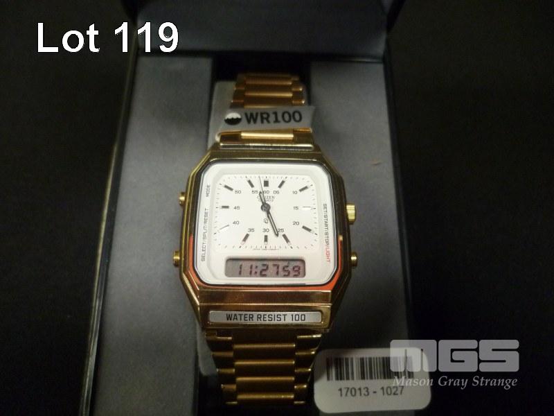 BOXED QUARTZ CITIZEN MENS WATCH, JAPAN MOVEMENT, BACK PLATE SERIVCE ENGRAVED, APPEARS UNWORN