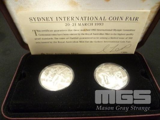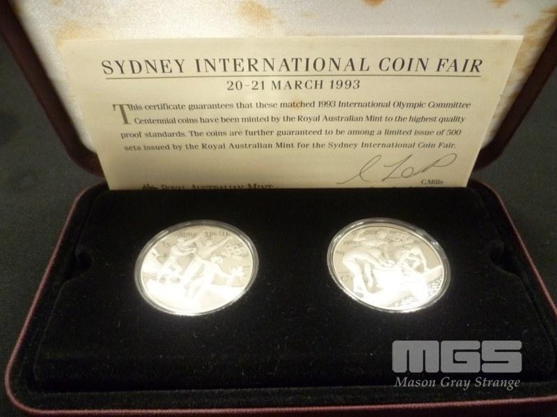 1983 2 x $20.00 PURE SILVER 1oz PROOF COIN "OLYMPIC SET" IN BOX