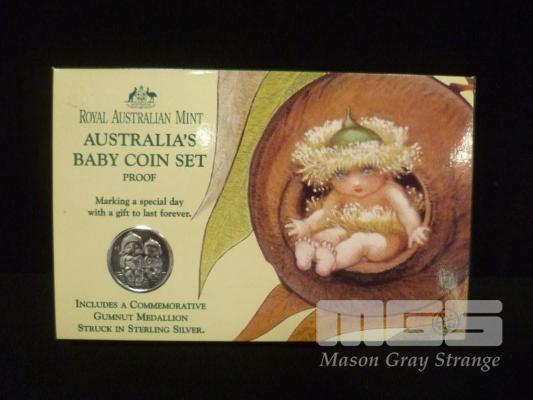 1995 BABY DATE PROOF 6 COIN SETS INCLUDES A GUMNUT MEDALLION STRUCK IN S/SILVER