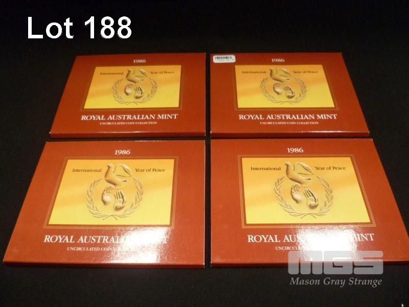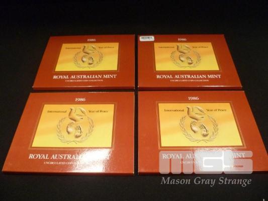 4 X ROYAL AUSTRALIAN MINT, 1986, UNCIRCULATED COIN COLLECTION, 'INTERNATIONAL YEAR OF PEACE'