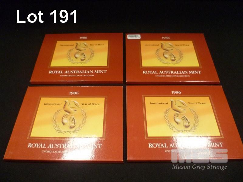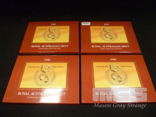 4 X ROYAL AUSTRALIAN MINT, 1986, UNCIRCULATED COIN COLLECTION, INTERNATIONAL YEAR OF PEACE