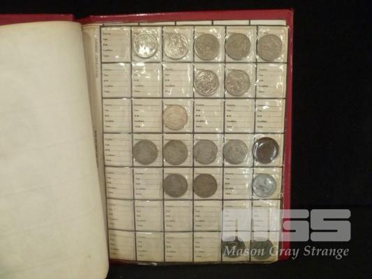 RENNIKS COIN ALBUM CONTAINING AUSTRALIAN PRE-DECIMAL & DECIMAL COINS & MEDALLIONS, (132 x COINS)