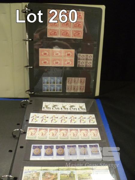 2 X HANGER ALBUMS WITH AUSTRALIA PRE-DECIMAL & DECIMAL MUH STAMPS, IMPRINT BLOCKS, STRIPS, ETC