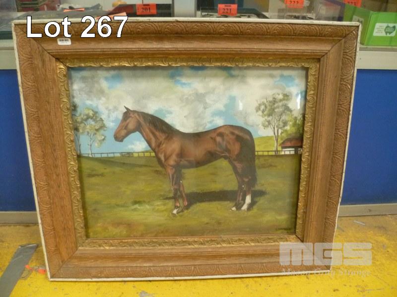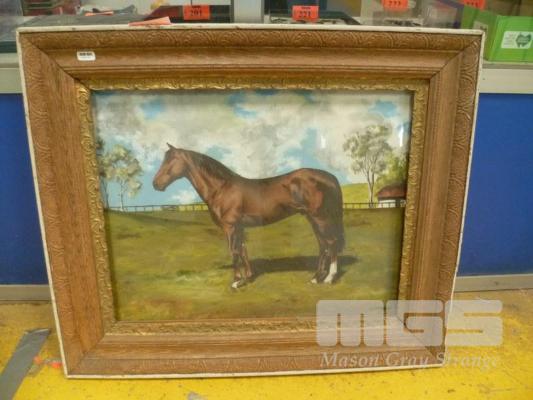 VINTAGE OIL PAINTING "TOBIN BRONZE" WINNER OF VIC DERBY, COX PLATES, CAULFIELD CUP, TOORAK, ETC (FRAME FRAGILE)