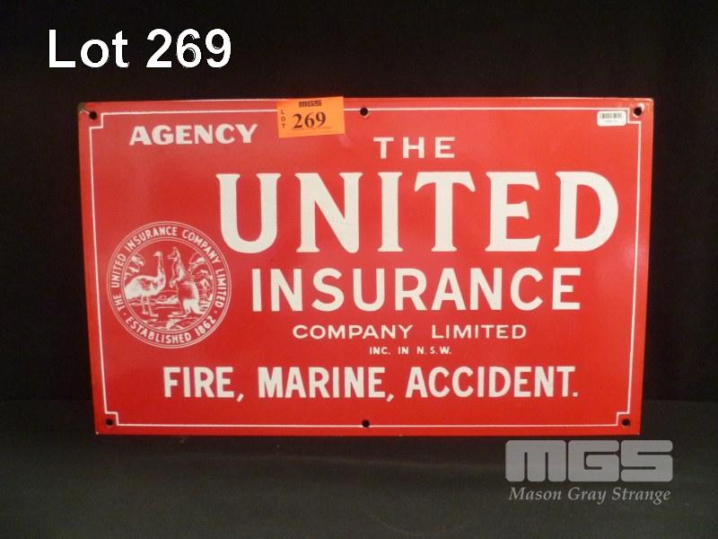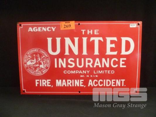 ENAMEL SIGN, UNITED INSURANCE, 60 x 30cm