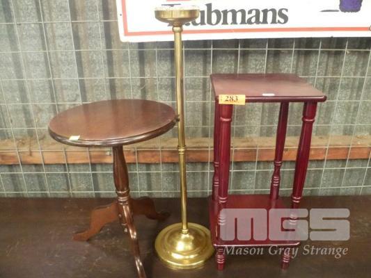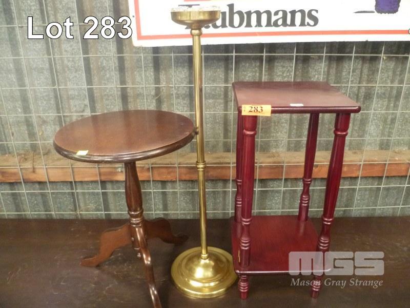 TIMBER 2 TIER SIDE TABLE, WINE TABLE & BRASS SMOKERS STAND