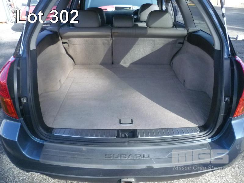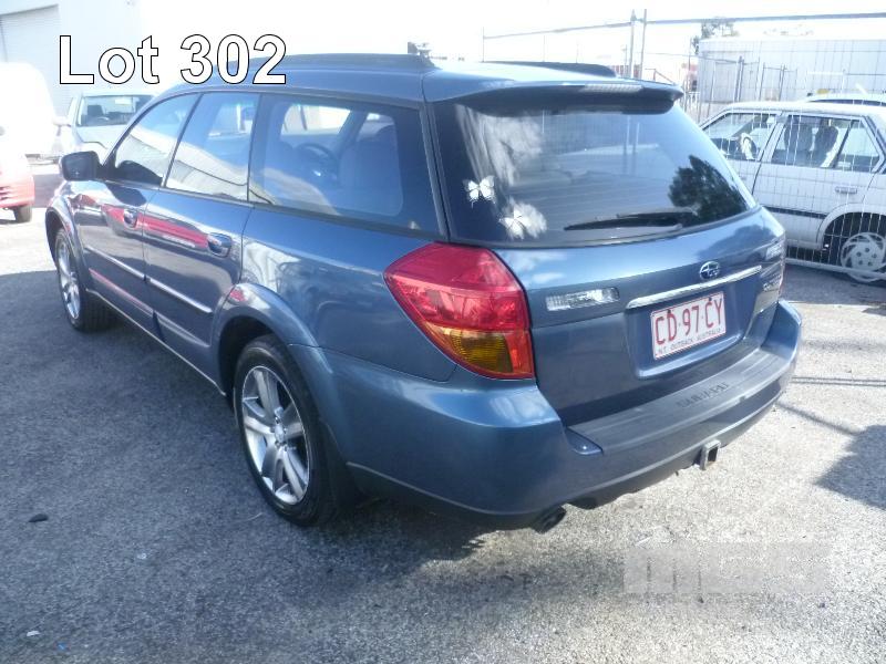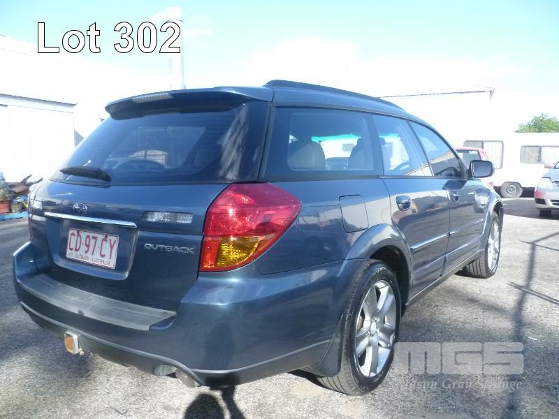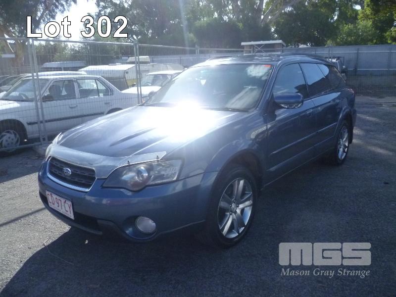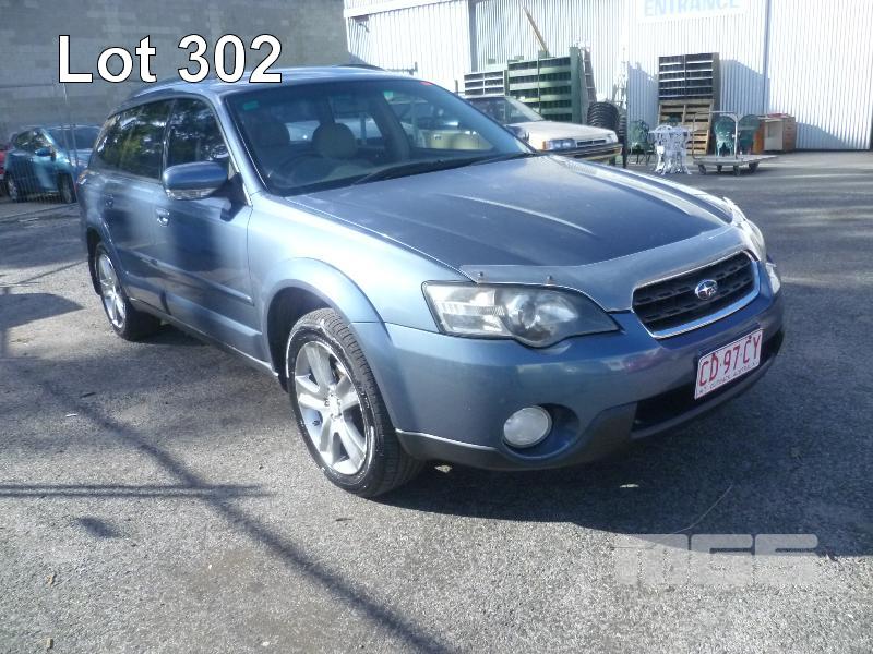 2004 SUBARU OUTBACK STATIONWAGON AWD REG: CD97C4 (NT) VIN: JF2BPEKUA4G012409 ODO: 306,085 4 CYLINDER, 4 SPEED AUTO, PETROL, BLUE DUCO, 5 DOORS, 5 SEAT, AWD ABS, AIR BAG, AIR CON, ALLOY WHEELS, CD PLAYER, CENTRAL LOCKING, CRUISE CONTROL, FOG LAMPS, POWER STEERING, POWER WINDOWS, SPARE WHEEL, TOW BAR (NO PAPERS, WITH 2 KEY/S, NO OWNER'S MANUAL, NO SERVICE BOOKS)