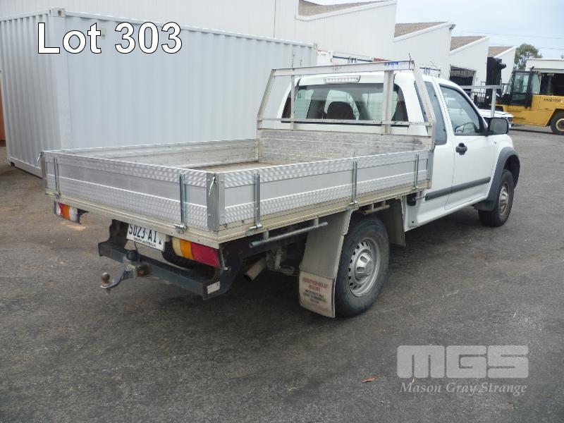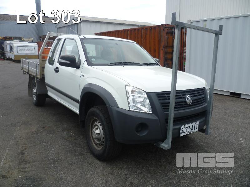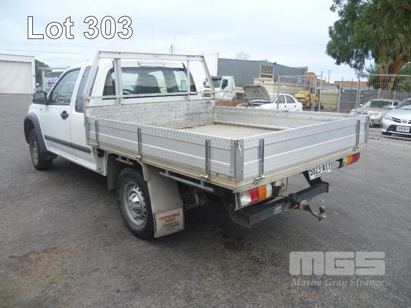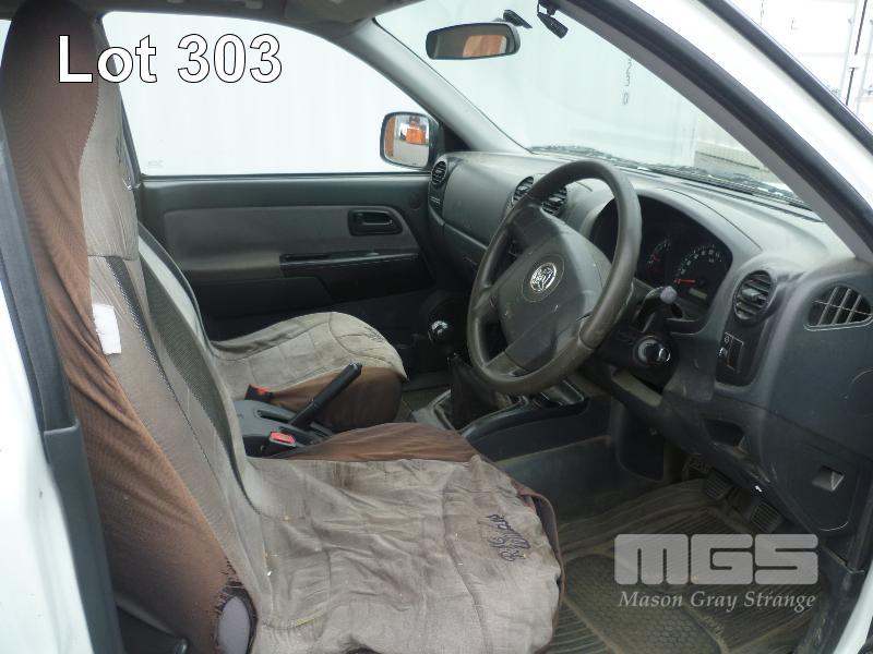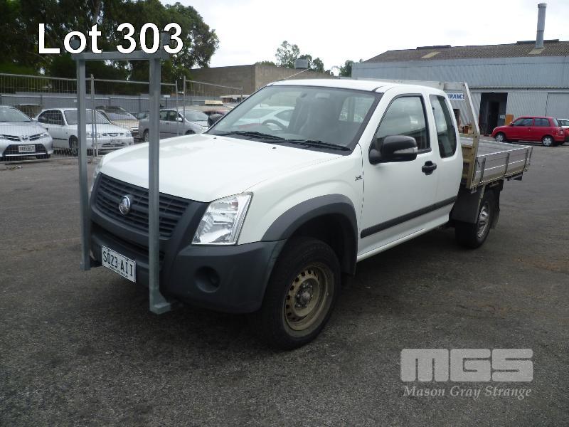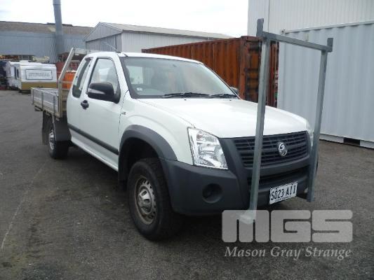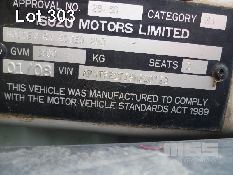 2008 HOLDEN RODEO TRAY TOP UTILITY REG: S023-AII (SA) VIN: MPATFR2758H520193 ENG: 10H9E071970036 ODO: 284,441 KM V6, 5 SPEED MANUAL, PETROL, WHITE, 2 DOORS, 2 SEAT, AIR BAG, AIR CON, CENTRAL LOCKING, POWER STEERING, POWER WINDOWS, SPARE WHEEL, TOW BAR (NO PAPERS, WITH 1 KEY/S, WITH OWNER'S MANUAL, WITH SERVICE BOOKS) CONDITION: PASENGER SIDE REAR TAIL LIGHT - DAMAGED