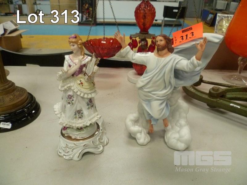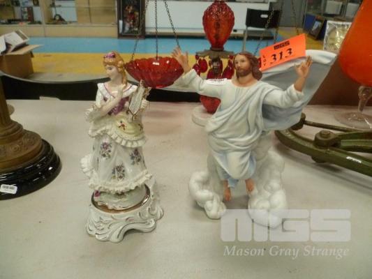 PAIR DECORATIVE FIGURES INC JESUS & LADY PLAYING VIOLIN