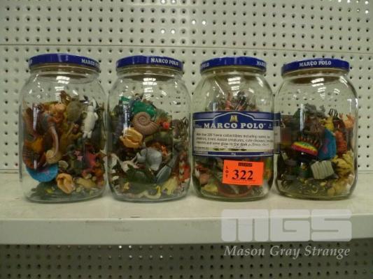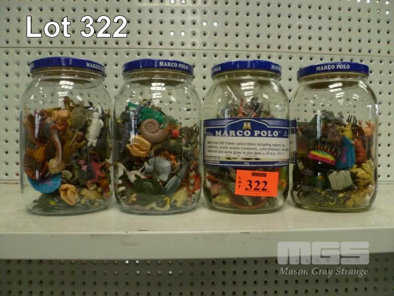YOWIE PLASTIC TOY COLLCTION, APPROX 200 INC RAPTORS, TOP PREDITORS, AUSSIE CREATURES, DINOSAURS ETC, 4 X JARS
