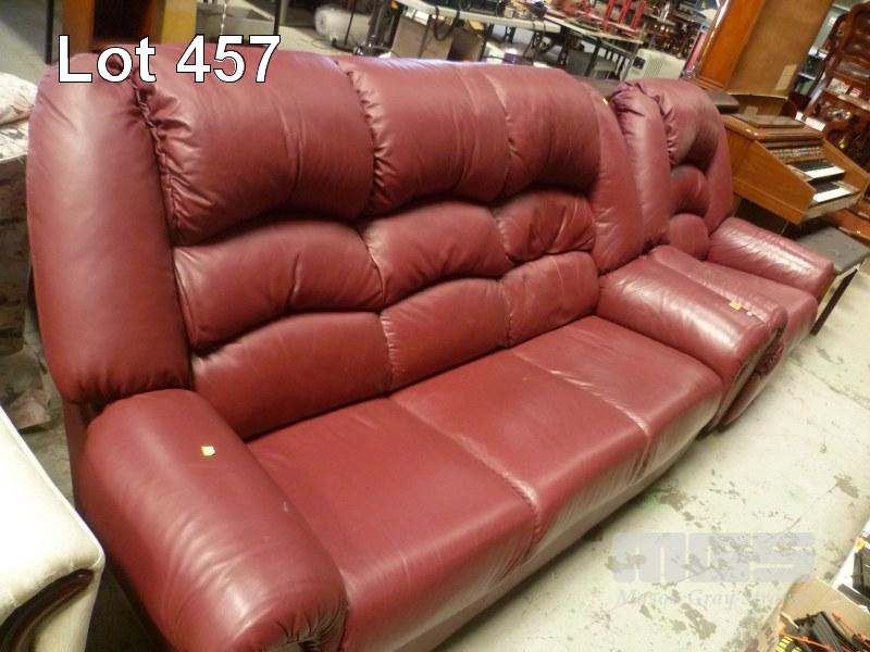 BURGUNDY LEATHER 2 PIECE LOUNGE SUITE INC 3 SEATER & RECLINER