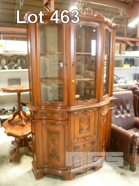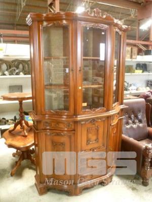GLASS CURVED FRONT DRINKS DISPLAY CABINET, DECORATIVE CARVED, 3 x GLAZED DOORS, 3 DOOR, 5 DRAWER