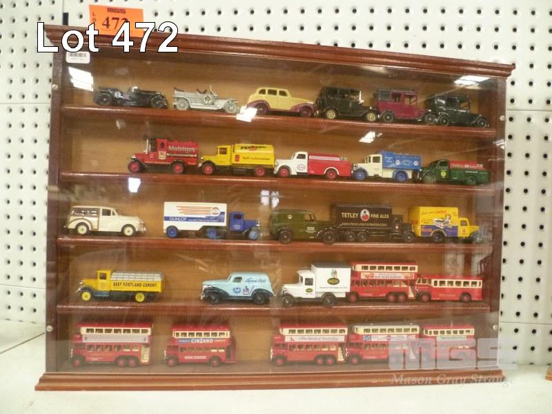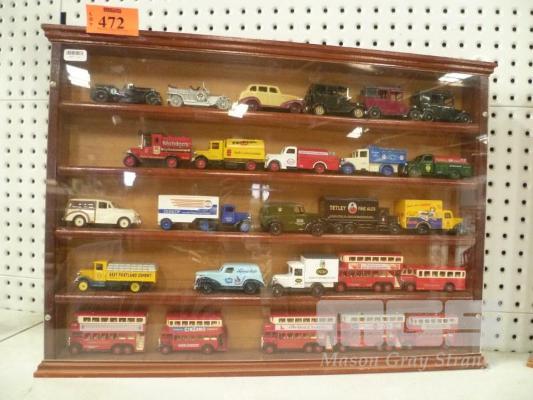 26 x MODELS OF YESTERYEAR DIECAST TRUCKS & VEHICLES IN DISPLAY CASE