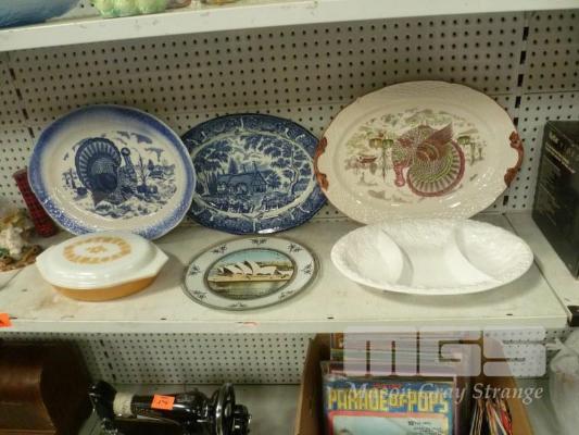 ASSORTED SERVING TRYAS, PYREX WARE, ETC