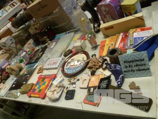 PUZZLES, BOOKS, DIECAST CARS & BUSES, PAINTS, JEWELLERY BOX, TINS, ETC, 1 x TABLE