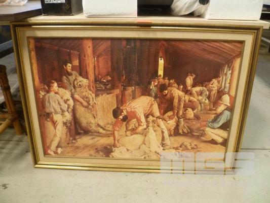 FRAMED PRINT, SHEERING THE RAMS, BY TOM ROBERTS