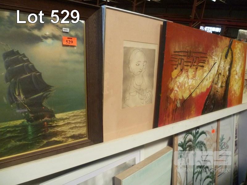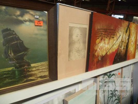 5 x PRINTS & PAINTINGS INC PIRTE SHIP & VIOLIN PAINTING