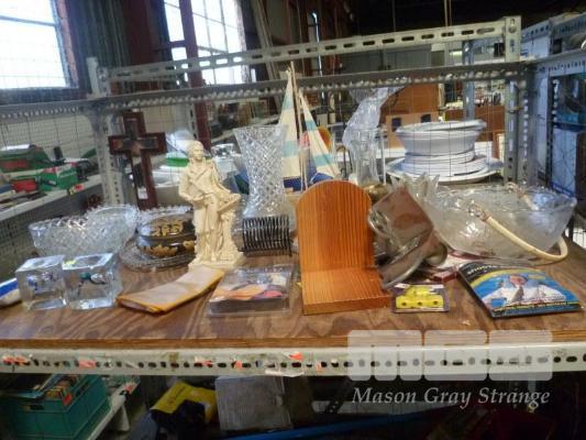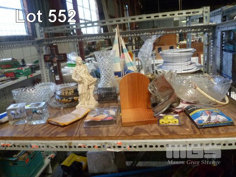 GLASS BOWLS, BOOK ENDS, FIGURINE, ETC
