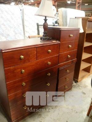 PINE TALL BOY, 6 DRAWER WITH MATCHING BEDSIDE CABINETS, STANDARD LAMP & TABLE LAMP