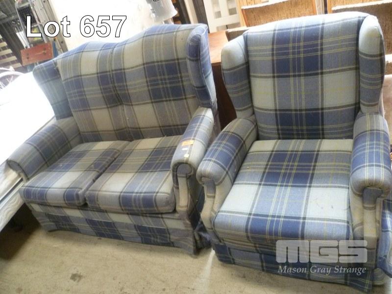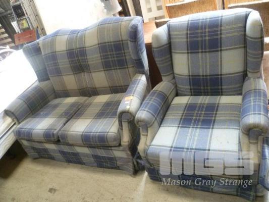 BLUE FABRIC, 2 PIECE LOUNGE SUITE, 2 SEATER & SINGLE