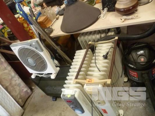 3 x ASSORTED STICK VACS, 3 x COLUMN HEATERS, OZITO WET/DRY VAC & IMITATION LOG HEATER