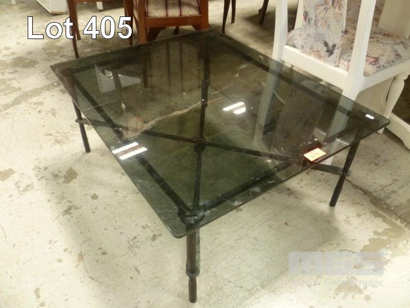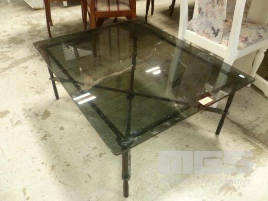 SQUARE COFFEE TABLE, METAL FRAME, GLASS TOP