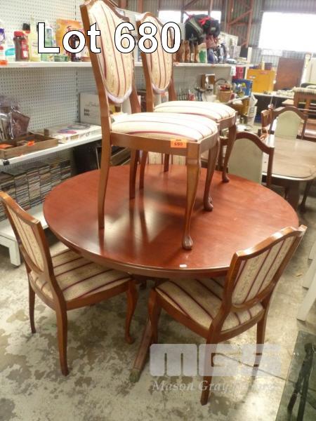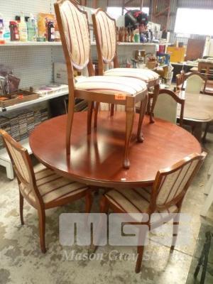 MAHOGANY 6 PIECE DINING SUITE INC ROUND TABLE, SINGLE PEDESTAL & 5 x DINING CHAIRS