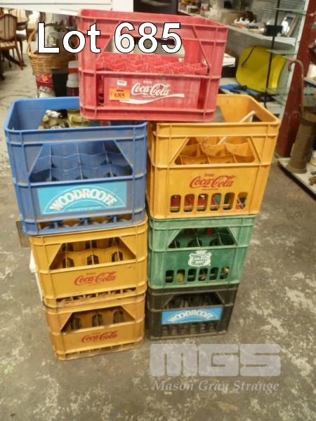 7 x VINTAGE DRINKS CRATES INC COKE & WOODROOFES