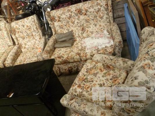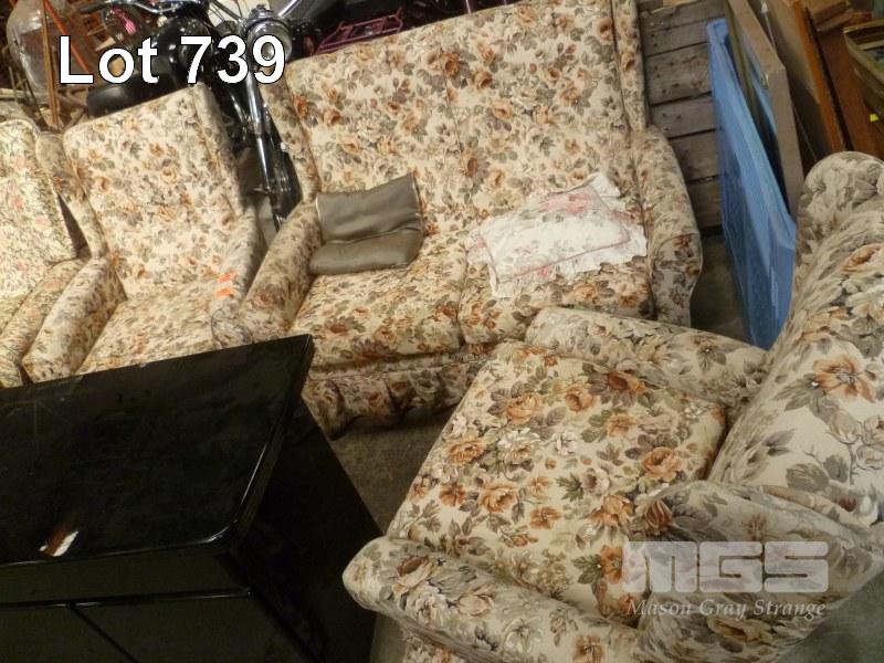 BROWN FLORAL FABRIC UPHOLSTERED 3 PIECE WING BACKED SOFA INCLUDING 2 SEATER SOFA & 2 x ARM CHAIRS (18505-16)