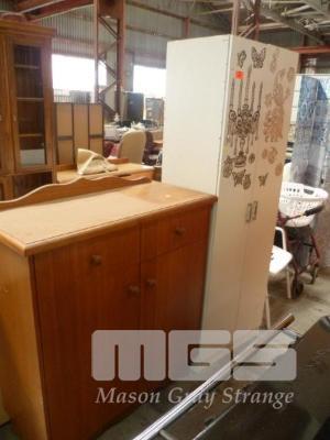 WHITE LAMINATE LINEN PRESS & TIMBER VENEER SIDEBOARD