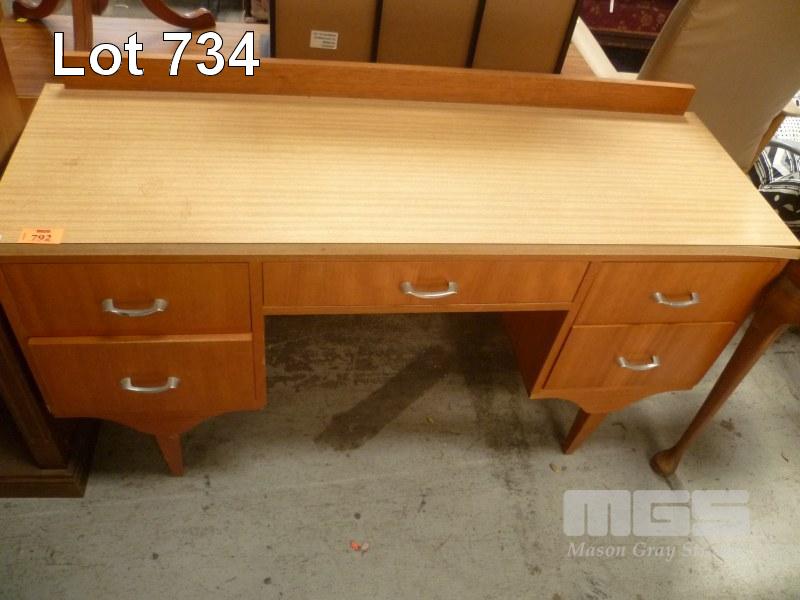 MID CENTURY DESK, TIMBER LAMINATE TOP