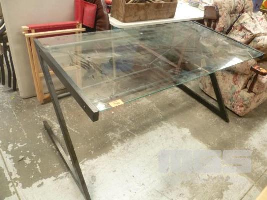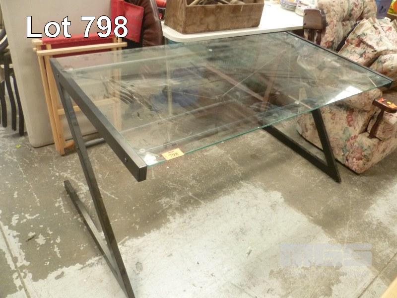 RECTANGULAR DINING TABLE, METAL FRAME, GLASS TOP