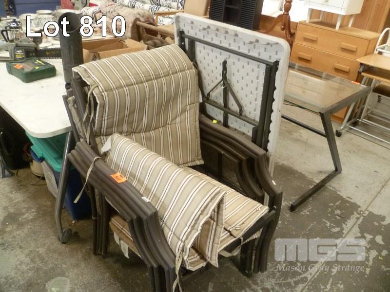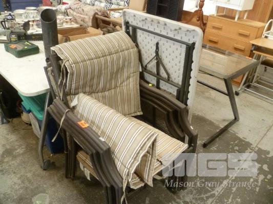 SET 4 ALUMINIUM FRAMED OUTDOOR CHAIRS, TRESTLE TABLE & EXERCISE TRAMP