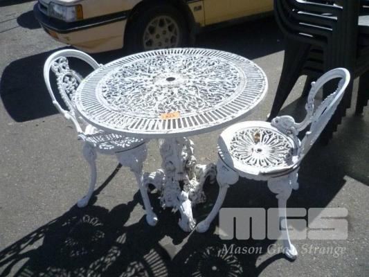 ALUMINIUM 3 PIECE OUTDOOR SETTING INC ROUND TABLE & 2 x CHAIRS