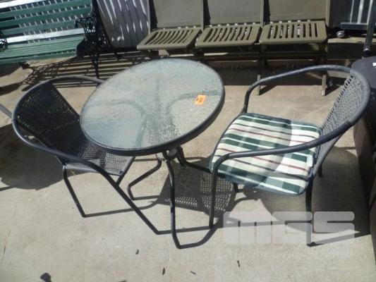 ALUMINIUM 3 PIECE OUTDOOR SETTING, INC; ROUND TABLE & 2 X CHAIRS