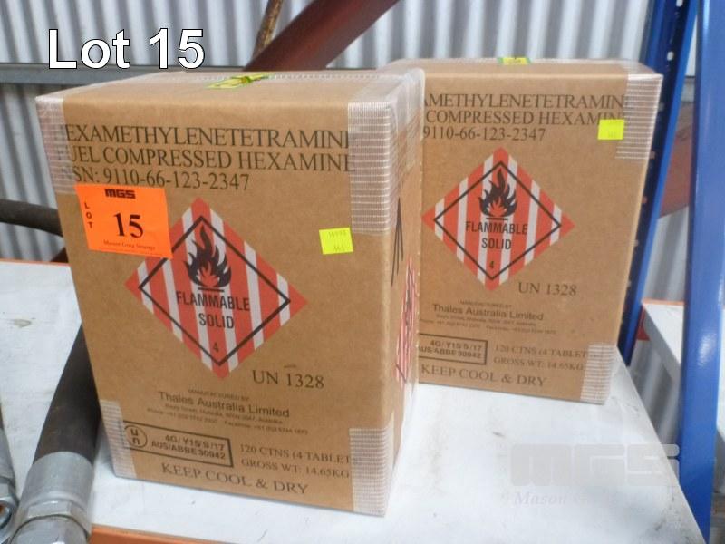 FIRE LIGHTERS, HEXAMINE BLOCKS MILITARY SPEC 240 x CARTONS (4 x TABLETS/CARTON) CONTENTS 2 x BOXES