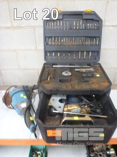 PLUNGE ROUTER KIT, GMC INC 1550w ROUTER, 240V, ASSORTED ROUTER TIPS, WITH CARRY CASE & 230mm ANGLE GRINDER