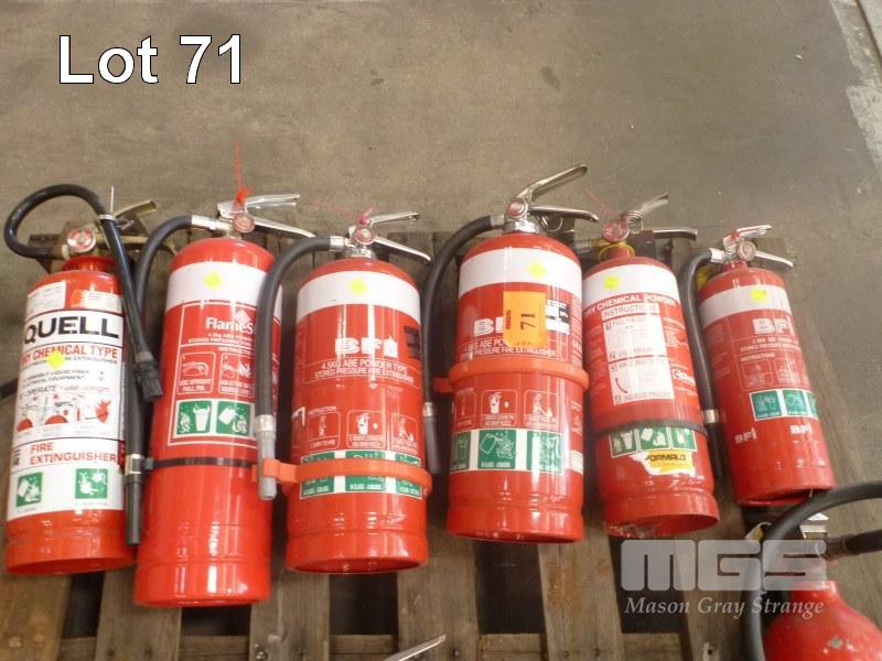 6 x FIRE EXTINGUISHERS, DRY POWDER, ASSORTED SIZES 5 x 4.5kg & 1 x 2.5kg