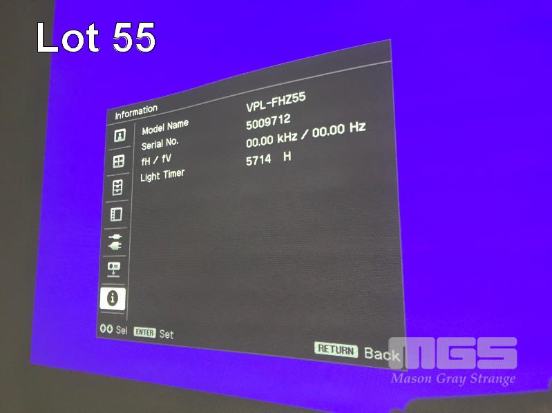 LASER PROJECTOR, SONY VPL-FHZ55 WUXGA 3LCD, 4,000 LUMENS, HDMI INPUT, 5,714 HOURS SHOWING (LAMP LIFE 20,000 HOURS) WITH REMOTE S/N:5009712