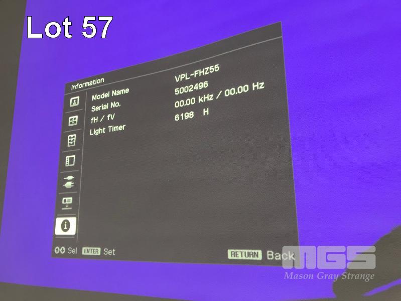 LASER PROJECTOR, SONY VPL-FHZ55 WUXGA 3LCD, 4,000 LUMENS, HDMI INPUT, 6,198 HOURS SHOWING (LAMP LIFE 20,000 HOURS) WITH REMOTE S/N:5002496
