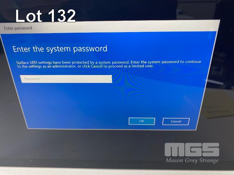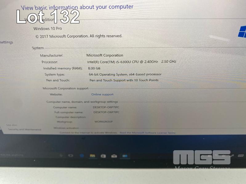 TABLET PC, MICROSOFT SURFACE PRO 4, MODEL 1724, CORE i5 6300U (6TH GEN) @ 2.4GHz, 8GB RAM, 256GB SSD, 12.3" TOUCHSCREEN, Wi-Fi, WINDOWS 10 PRO INSTALLED & 44W POWER SUPPLY (1800) (NOTE: UEFI SETTINGS PASSWORD PROTECTED) S/N:039093454353