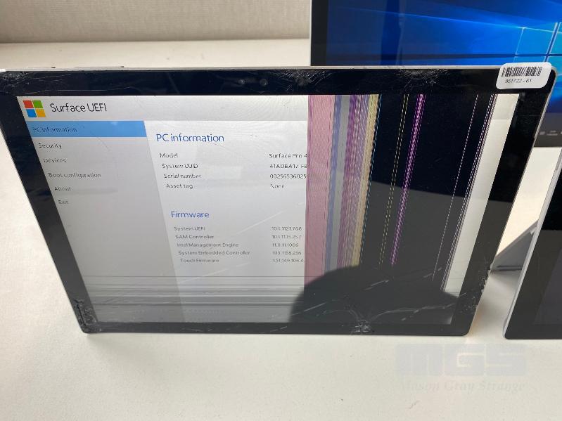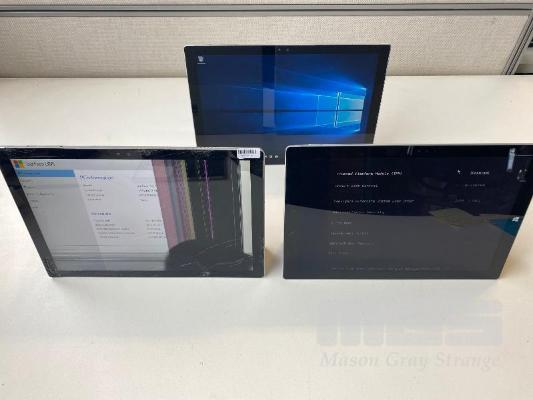 MICROSOFT SURFACE PRO 4, MODEL 1724 (VARIOUS SCREEN FAULTS, DAMAGED STAND) MICROSOFT SURFACE PRO 4, MODEL 1724 (DAMAGED SCREEN) MICROSOFT SURFACE PRO 3, MODEL 1631 (DAMAGED SCREEN) (NO POWER SUPPLIES) S/N:079673354953, 002565360253, 014334651853