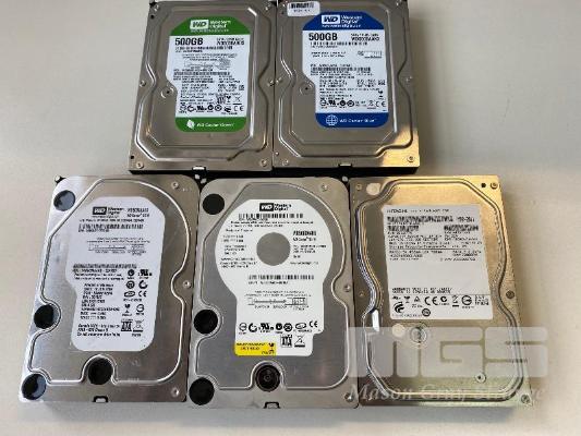 5 x ASST 500GB SATA HARD DRIVES, 3.5"