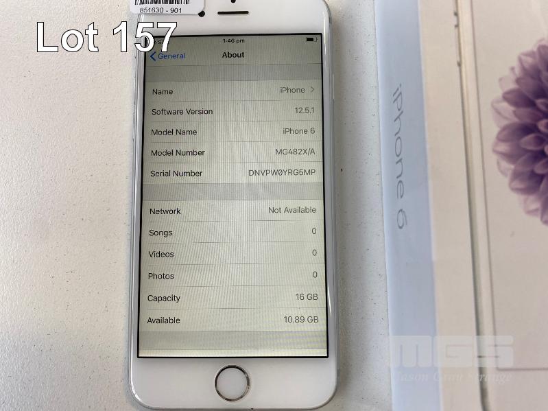 APPLE iPHONE 6, 16GB, SILVER, MODEL A1586 (NO CHARGER, NO CABLE) S/N:DNVPW0YRG5MP