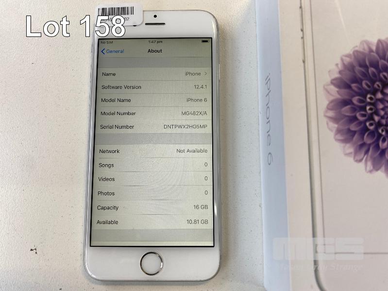 APPLE iPHONE 6, 16GB, SILVER, MODEL A1586 (NO CHARGER, NO CABLE) S/N:DNTPWX2HG5MP