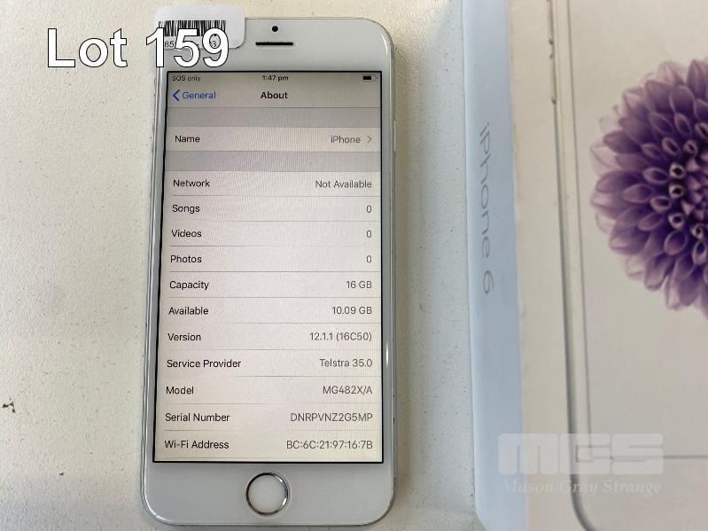 APPLE iPHONE 6, 16GB, SILVER, MODEL A1586 (NO CHARGER, NO CABLE) S/N:DNRPVNZ2G5MP