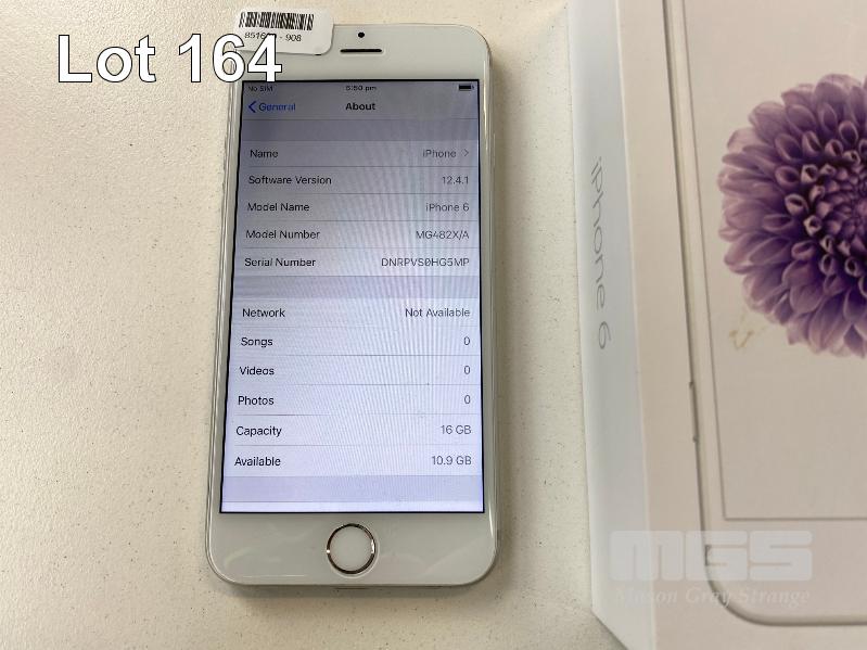 APPLE iPHONE 6, 16GB, SILVER, MODEL A1586 (NO CHARGER, NO CABLE) S/N:DNRPVS0HG5MP