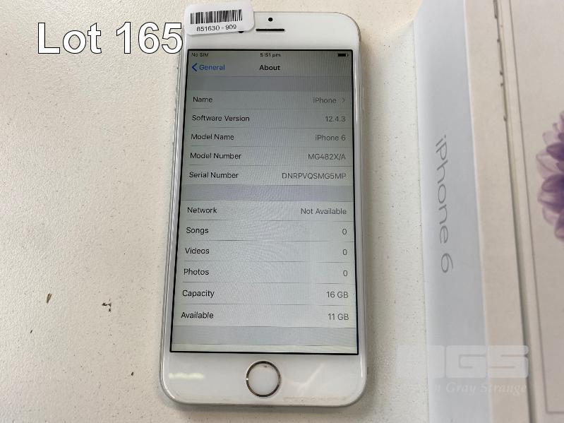 APPLE iPHONE 6, 16GB, SILVER, MODEL A1586 (NO CHARGER, NO CABLE) S/N:DNRPVQSMG5MP