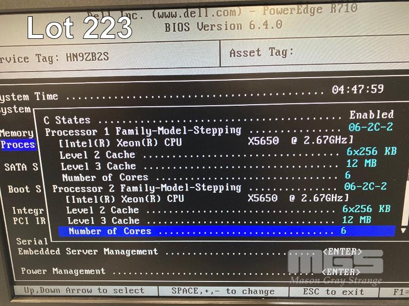 RACKMOUNT SERVER, DELL POWEREDGE R710, 2U, 2 x XEON X5650 @ 2.67GHz, 128GB ECC DDR3 RAM, 6 x 300GB SAS HDD, DVD-ROM, DUAL PORT FIBRE CHANNEL (QLE2562), PERC H800 SAS CONTROLLER, 4-PORT NETWORK, 2 x PSU WITH RAILS S/N:HN9ZB2S